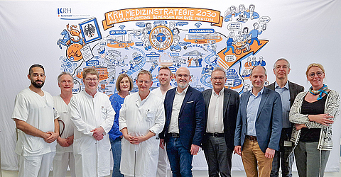 Freuen sich über die Zertifizierung: Das Team der Klinik für Nephrologie, Angiologie, Hypertensiologie und Rheumatologie im KRH Klinikum Siloah mit (v. l.) Emal Fakhri, Oberarzt, Dr. Hans Peter Lorenzen, Oberarzt, Leitung Angiologie und Interdisziplinäres Gefäßzentrum, Dr. Arne Gäfgen, Oberarzt, Leitung Rheumatologie, Sabine Homberg, stellv. Stationsleitung C5, Prof. Dr. Jan Jakob Menne, Chefarzt, Dr. Christopher Schrimpf, Facharzt für Innere Medizin und Angiologie, und Dr. Fedai Oezcan, Chefarzt Klinikum Dortmund, Auditor, Dr. Bernd Winterberg, Haupt-Auditor, Dr. Ulrich Paul Hinkel, Chefarzt Bad Berka, Auditor, Dr. Michael Stufler, ärztlicher Klinikdirektor und Carsta Seidel, Qualitätsmanagement.