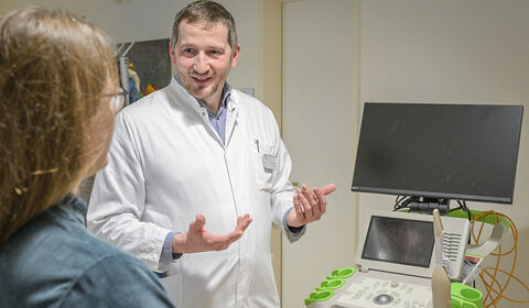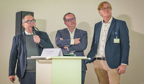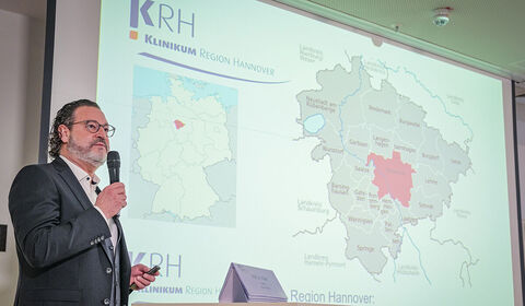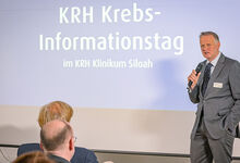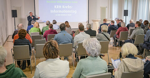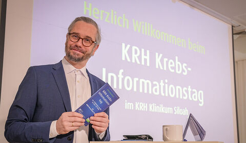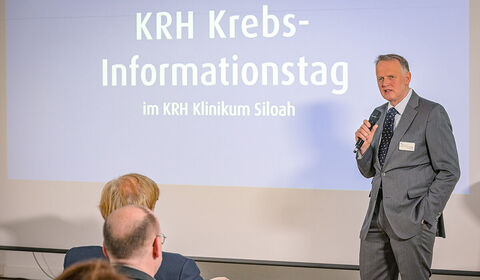Prof. Dr. Dr. Martin Müller, Direktor des KRH Krebszentrum, begrüßt die Besucherinnen und Besucher im Konferenzraum des KRH Klinikum Siloah.