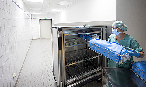 Ein weiteres sichtbares Ergebnis der Umbaumaßnahmen ist die verbesserte Ordnung im OP-Bereich: Medizinische Geräte sind im neuen Lagerraum platzsparend untergebracht.