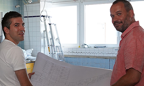 Im Zentrum der Maßnahme stand der ehemalige, stillgelegte Sterilisationsbereich. Dieser wurde vollständig entkernt, alte Großgeräte sowie nicht mehr benötigte Ver- und Entsorgungsleitungen zurückgebaut. Aus drei kleinen Räumen entstand ein großzügiger, offener Lagerbereich. Die neue Raumstruktur ermöglicht eine klare Trennung zwischen reiner und unreiner Seite. Gleichzeitig schafft das neue Sterilgutlagersystem eine deutlich verbesserte Ordnung und Übersichtlichkeit, vor allem bei der Lagerung der Sterilisationssiebe – das sind spezielle Tabletts, in denen chirurgische Instrumente sortiert werden. Dies erleichtert das Handling und optimiert die Arbeitsabläufe.