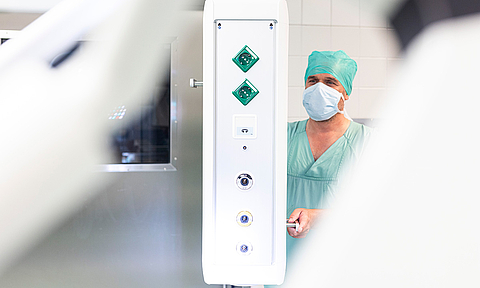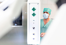 Auch die technische Infrastruktur wurde umfassend modernisiert. In allen vier OP-Sälen wurden die Deckenversorgungseinheiten (DVEs) ausgetauscht. Diese technischen Geräte, die an der OP-Decke befestigt sind, bündeln wichtige Versorgungsanschlüsse wie zum Beispiel Strom und Netzwerkanschlüsse. Die neuen DVEs sind elektrisch höhenverstellbar und mit aktueller Netzwerktechnik ausgestattet.