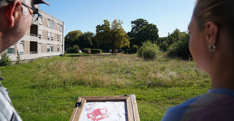 KRH Bauprojektleiterin Nora Nitschke nimmt Maß: Hier entsteht das neue Geriatriegebäude.