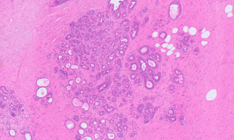 "Zu unseren Aufgaben in der Pathologie gehört es, Zellgewebe von Patienten auf mögliche krankhafte Veränderungen hin zu untersuchen. Diese Tumorzellen gehören einfach nicht dorthin, und das sehen wir als erfahrene Diagnostiker sofort. Sie stören einfach die harmonische Struktur, die sich uns, wie in diesem Fall bei tumorfreiem Gewebe aus der Brustdrüse, darstellt. Die Farbe entsteht übrigens erst bei der Aufbereitung des Zellschnitts. Er erlaubt es, bestimmte Strukturen im Gewebe besser zu erkennen." - Prof. Dr. Ludwig Wilkens, Chefarzt des Instituts für Pathologie im KRH