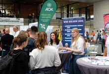 Es war wieder soweit - die sechste Messe fand auch in diesem Jahr statt und war wieder ein voller Erfolg. Die engagierten Mitarbeiterinnen des KRH Klinikum Neustadt am Rübenberge nahmen sich die Zeit, den Schüler*innen die vielfältigen Ausbildungsmöglichkeiten im Klinikum näherzubringen. Die Mitarbeiterinnen weckten das Interesse der jungen Menschen und gaben ihnen Einblicke in die spannende Welt der medizinischen Berufe. Mehr als 1200 Schüler*innen aus allen Schulzweigen der Schulen des Stadtgebietes und des Umlands besuchten die Messe. Mit insgesamt vier Vorträgen und einem Stand konnten die KRH Mitarbeiterinnen Präsenz zeigen und den Schüler*innen über die verschiedenen Ausbildungsberufe der KRH informieren.