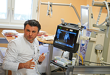 Ferhat Dasci, Facharzt für Nephrologie, führt am Tag der offenen Tür im Dialysezentrum im KRH Klinikum Lehrte eine Nierensonographie vor.