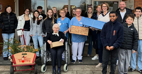 Strahlende Gesichter bei der Übergabe der Geschenke der Schüler*innen an das KRH Klinikum Robert Koch Gehrden.