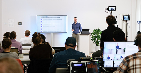 Seit der Corona-Pandemie läuft das Format auf Bestreben von Prof. Menne hybrid ab. Ein großer Vorteil des hybriden Formats: Interessierte aus dem gesamten deutschsprachigen Raum können teilnehmen. Und die Zahlen sprechen für sich: Insgesamt 550 Teilnehmende, davon 100 KRH Mitarbeitende und 440 extern, hatten sich für die virtuelle Teilnahme angemeldet - ein neuer Höchstwert für das Repetitorium. Für Mitarbeitende des KRH ist die Teilnahme kostenlos, externe Personen müssen eine Teilnahmegebühr zahlen.