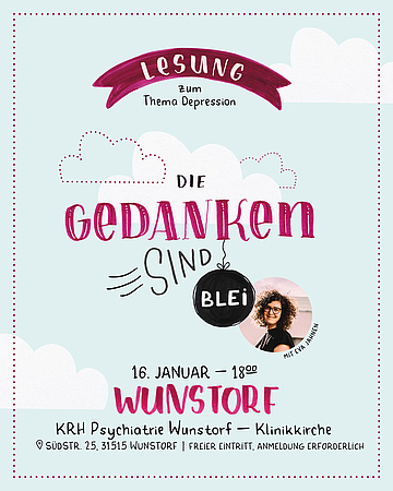 Wie fühlt es sich an, wenn die Depression wieder anklopft? Dieses Gefühl kennt Eva Jahnen, seit sie 13 ist. Allerdings ist das alles gar nicht so leicht zu beschreiben. In den vielen Jahren, die Eva mittlerweile mit der Diagnose lebt, kann sie heute vieles besser einordnen und auf den Punkt bringen. In ihrem Buch, „Die Gedanken sind Blei“ illustriert und schreibt sie aus ihrem Alltag mit der Erkrankung und gibt ehrliche und offene Einblicke in das Leben mit Depressionen. „Die Gedanken sind Blei“ ist ein Buch, das nicht nur für Menschen mit Depression entstanden ist, sondern es richtet sich an alle, die mehr über den Umgang mit der Erkrankung erfahren möchten. In vielen kurzen Texten und dazugehörigen Illustrationen beleuchtet Eva verschiedenste Facetten ihrer Depression. In Ihrer Lesung spricht sie über Symptome, Gefühle und Nicht-Gefühle, über gut gemeinte Ratschläge, Selbsthilfestrategien, Therapiemöglichkeiten und YEAHMomente. Zu jedem Text finden sich verspielte, ehrliche Illustrationen, die zum Nachdenken oder Schmunzeln anregen.