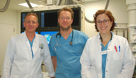 Ein neues Verfahren zum Schutz vor Schlaganfällen für Patienten mit Vorhofflimmern wird seit Kurzem in der Kardiologie des KRH Klinikums Siloah-Oststadt-Heidehaus angewandt. Dabei wird im sogenannten linken Herzohr über einen Katheter ein Schutzschirmchen implantiert. Die Maßnahme findet vor allem Verwendung bei Patienten, die blutverdünnende Medikamente nicht vertragen. Unter der Leitung von Dr. med. Christoph Lissel und Dr. med. Helge Kohlmann, die beide als Oberärzte in der Klinik für Kardiologie, Rhythmologie und internistische Intensivmedizin (Chefarzt Prof. Dr. med. Andreas Franke) arbeiten, wurden bereits mehrere Eingriffe erfolgreich durchgeführt.